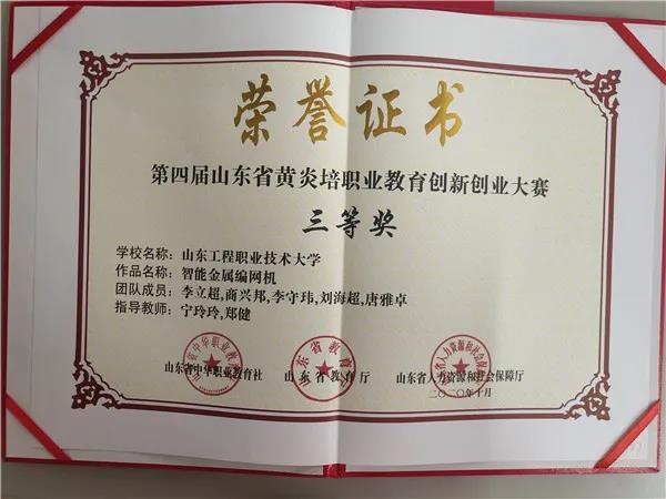 2020-11-17近期,第四屆山東省黃炎培職業(yè)教育創(chuàng)新創(chuàng)業(yè)大賽圓滿落幕。經(jīng)過決賽階段的激烈角逐,我校機械工程學(xué)院參賽的《智能金屬編網(wǎng)機》項目獲得三等獎,同時寧玲玲、鄭健老師榮獲“優(yōu)秀指導(dǎo)教師”稱號。本次大賽類別包括學(xué)生創(chuàng)新創(chuàng)業(yè)規(guī)劃大賽和教師創(chuàng)新創(chuàng)業(yè)指導(dǎo)大賽。7月份大賽正式啟動以來,全省共有160余所院...