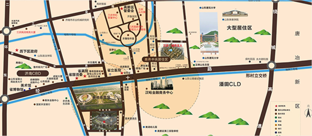 三慶·城市主人所處區域是濟南未來東部新城主要居住區—雪山片區,雪山片區擁有優質的自然資源;周邊山東建筑大學、山東省競技體育學院、山東廣播電視大學林立,學術人文氣息濃厚;經十東路貫穿東西,15分鐘到達市區核心;奧體中心、省立醫院、高新區,為業主生活提供完善的配套;目前已有將近10家房地產項目入駐本片區,成為了繼奧體文博片區后,濟南東擴進程中又一極具發展潛力的地段。