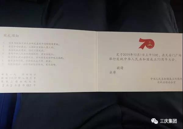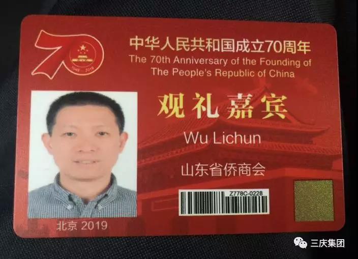 三慶集團董事長吳立春受邀出席慶祝中華人民共和國成立70周年慶典